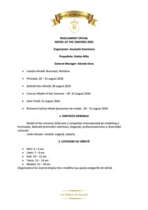 În vara anului 2026, Bucureștiul va deveni din nou scena unei experiențe spectaculoase dedicate tinerelor talente din modeling. Înscrierile pentru ediția 2026 a competiției internaționale Model of the Universe sunt oficial deschise, iar organizatorii pregătesc trei zile pline de emoție, creativitate și eleganță.